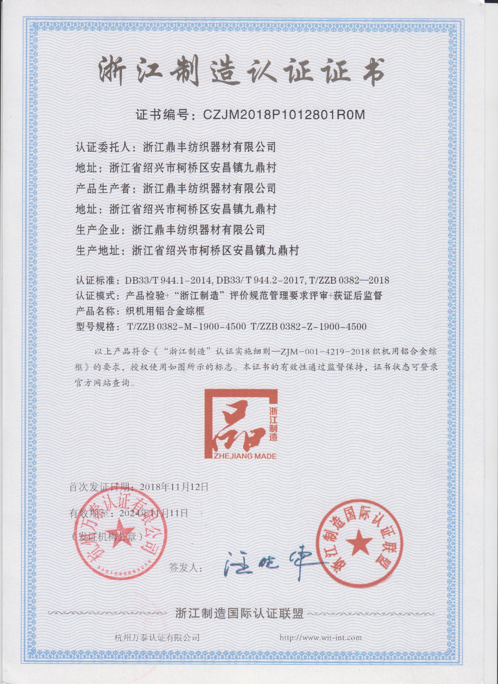 公司現(xiàn)有固定資產(chǎn)6000余萬元,員工300余人,現(xiàn)具有年產(chǎn)噴氣異型筘12萬米,劍桿筘32萬米,噴水筘5萬米,綜框20萬片,鋼片綜2億片,停經(jīng)片1.5億片, 織軸1.2萬套的生產(chǎn)能力。公司“越泉”商標被評為“中國馳名商標”。公司通過ISO9001 :2015國際質(zhì)量體系認證,ISO14001:2015國際環(huán)境管理體系認證,ISO45001:2018國際職業(yè)健康安全管理體系認證,噴氣織機用鋼筘和織機用鋁合金綜框獲得“浙江制造”品牌認證,公司擁有自營進出口權,產(chǎn)品暢銷全國并遠銷印度、巴基斯坦、土耳其、埃及、哥倫比亞、意大利等國家和地區(qū)。